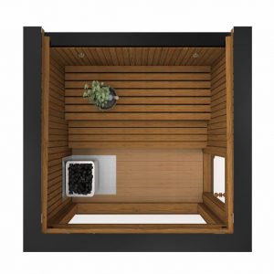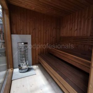 - Straight benches inside the sauna (Thermowood)