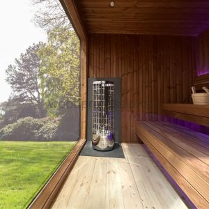 Sauna window: Double glazed toughened, tinted glass: 1940 x 1940 mm